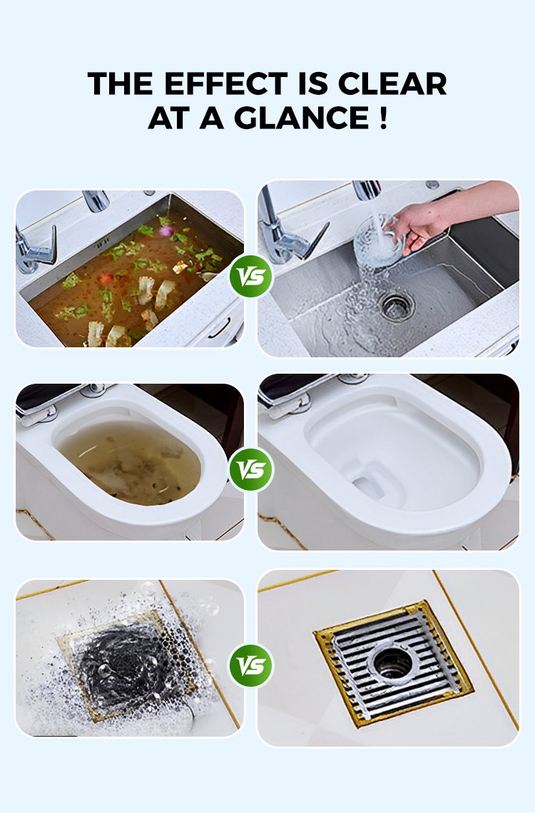 REDUCE PEST INFESTATION, SAFEGUARD HEALTHY LIVING - Clogged pipes often serve as breeding grounds for pests like cockroaches and flying insects. Our Powerful Pipeline Dredging Powder maintains clean and unobstructed pipelines, effectively eliminating the environmental conditions conducive to pest breeding. The antibacterial properties of its active oxygen further inhibit bacterial growth, reducing the risk of contamination and health threats caused by pests scavenging and nesting in your home. Protect your household with a healthier, pest-free living environment!